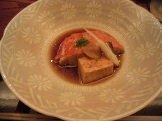 10年のあれこれを祝してお食事会。以前、サクラの季節に訪れた目黒川沿いの「土山人」さんに行ってきました。味よし、雰囲気よし、器よし、の素敵なお店です。六月のコースは、みょうが、トウモロコシ、オクラ、苦瓜などの夏野菜がふんだんにもりこまれた梅雨においしいメニュー。写真は温かいすだちのお蕎麦。香りもよく、さっぱり。まるで水盤に睡蓮がひらいたように美しいです。